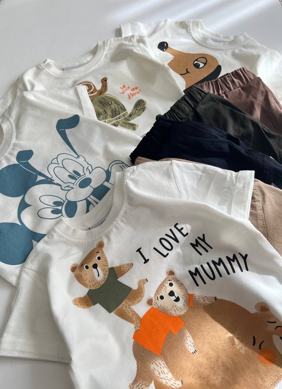3 سال: تیشرت: قد 38 - پهنا 32 -- شلوارک: قد 32 - کمر 19