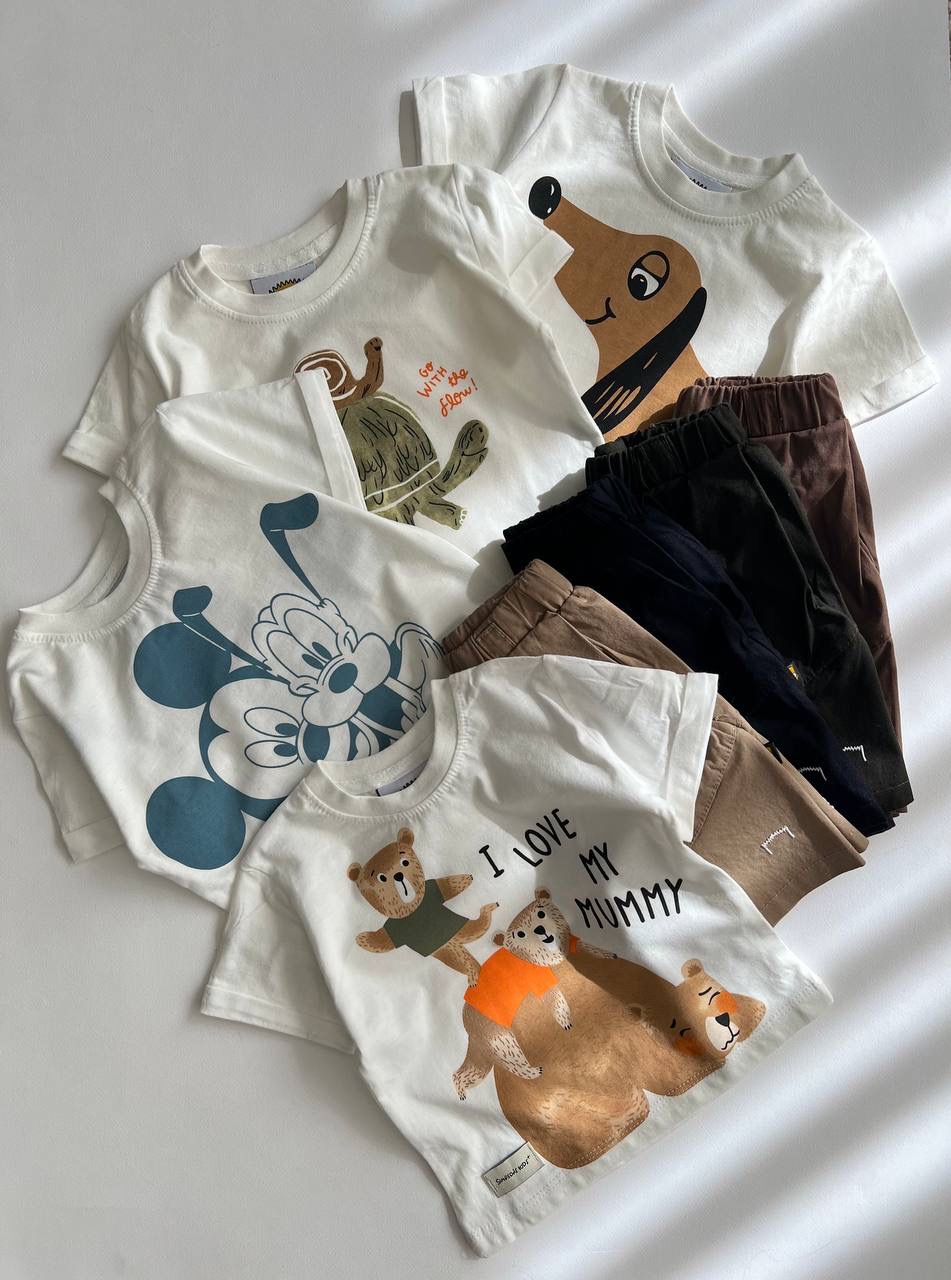 4 سال: تیشرت: قد 41 - پهنا 33 -- شلوارک: قد 34 - کمر 21