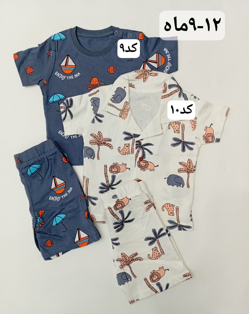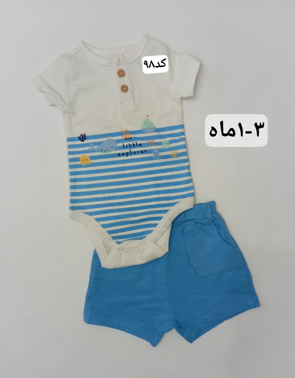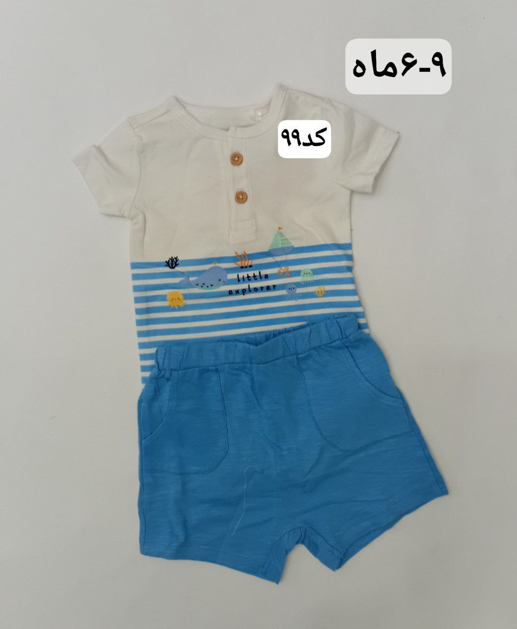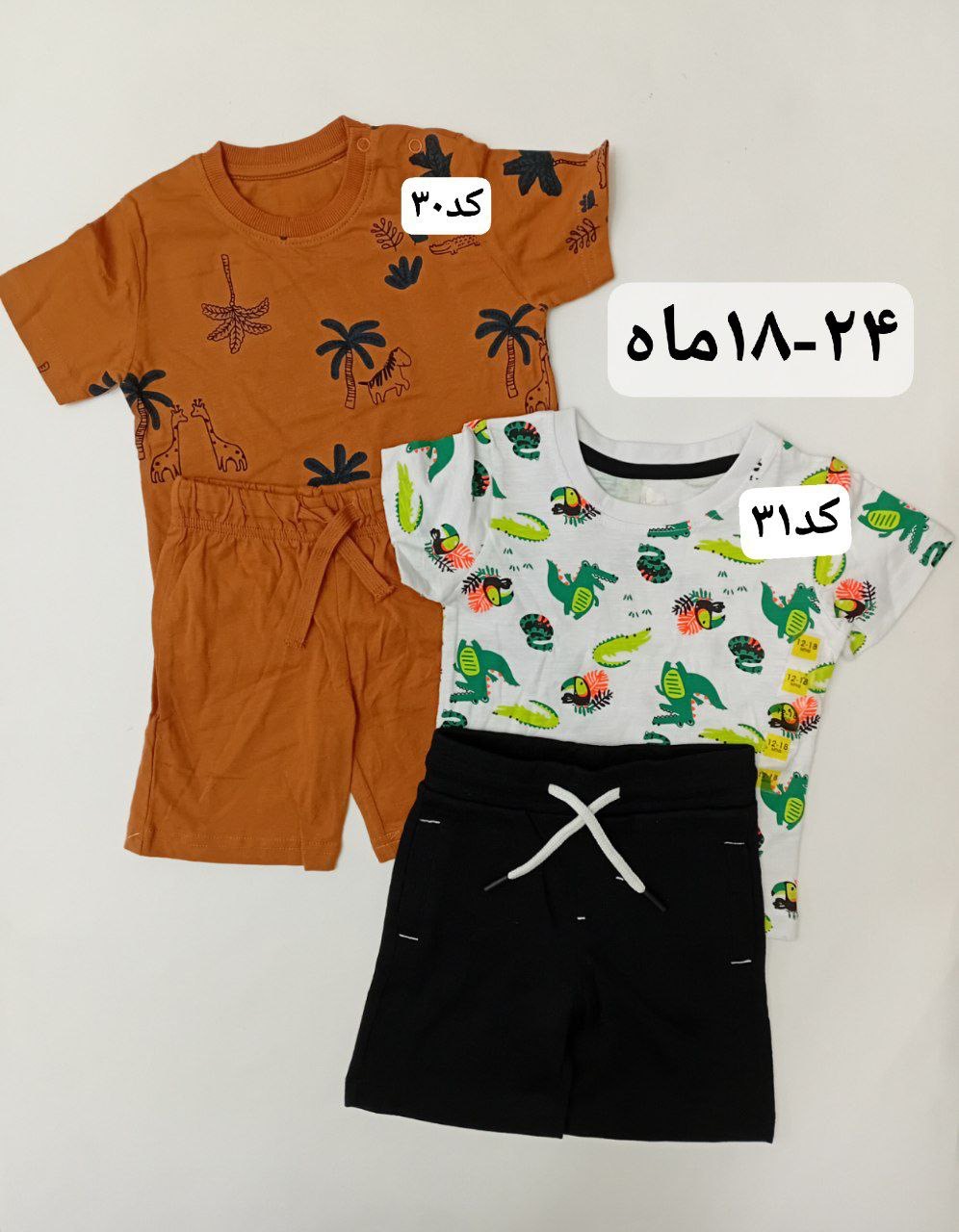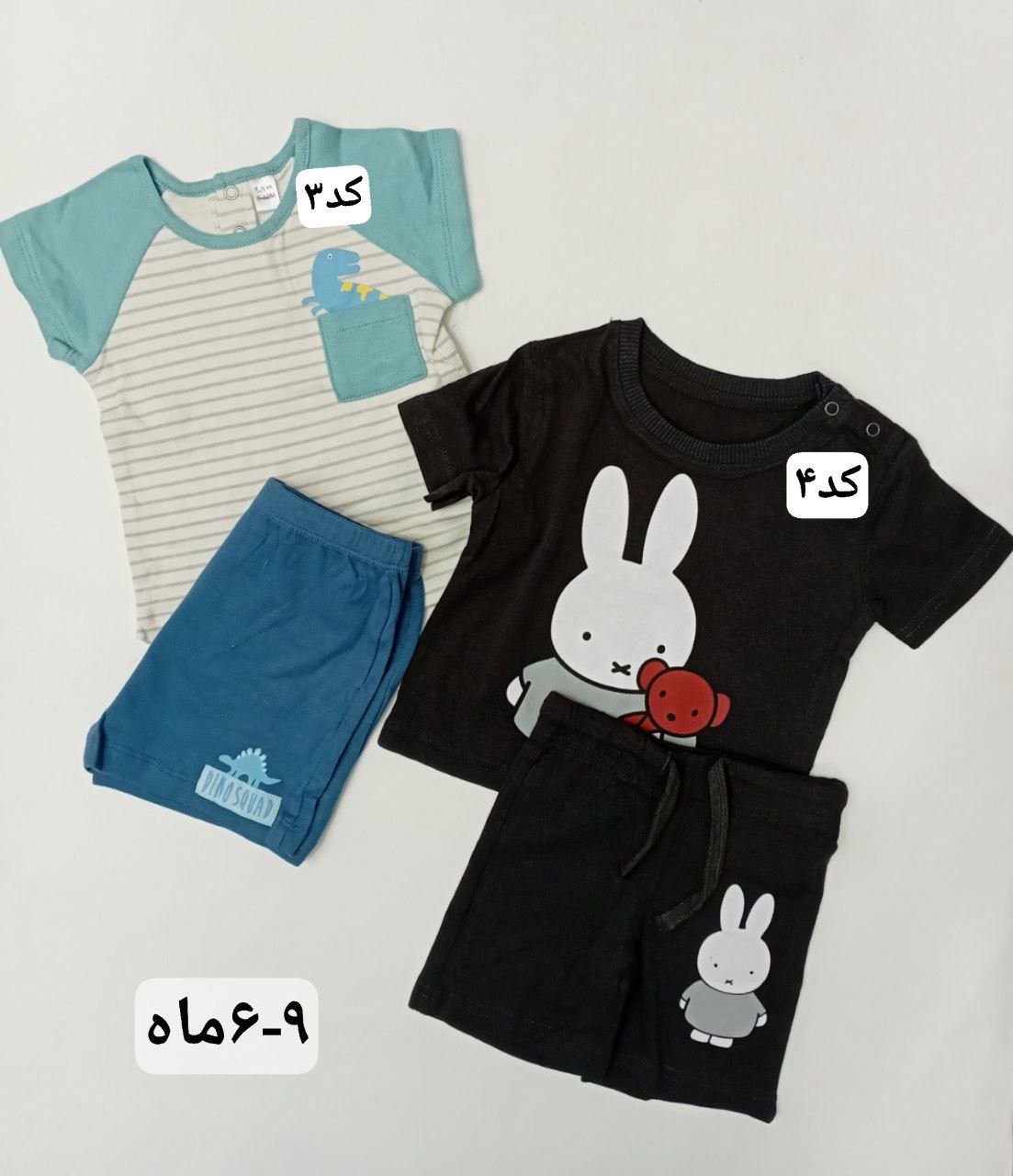 9 - 6 ماه : تیشرت: قد 32 - پهنا 28 -- شلوارک: قد 22 - کمر 26