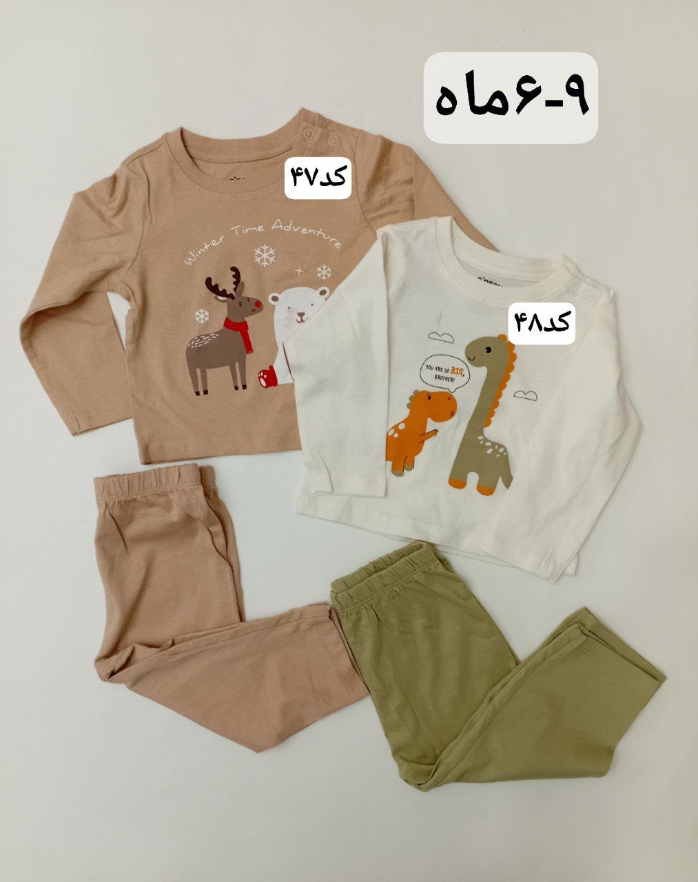 9 - 12 ماه : بلوز: قد 34 - پهنا 28 -- شلوار: قد 40 - کمر 21