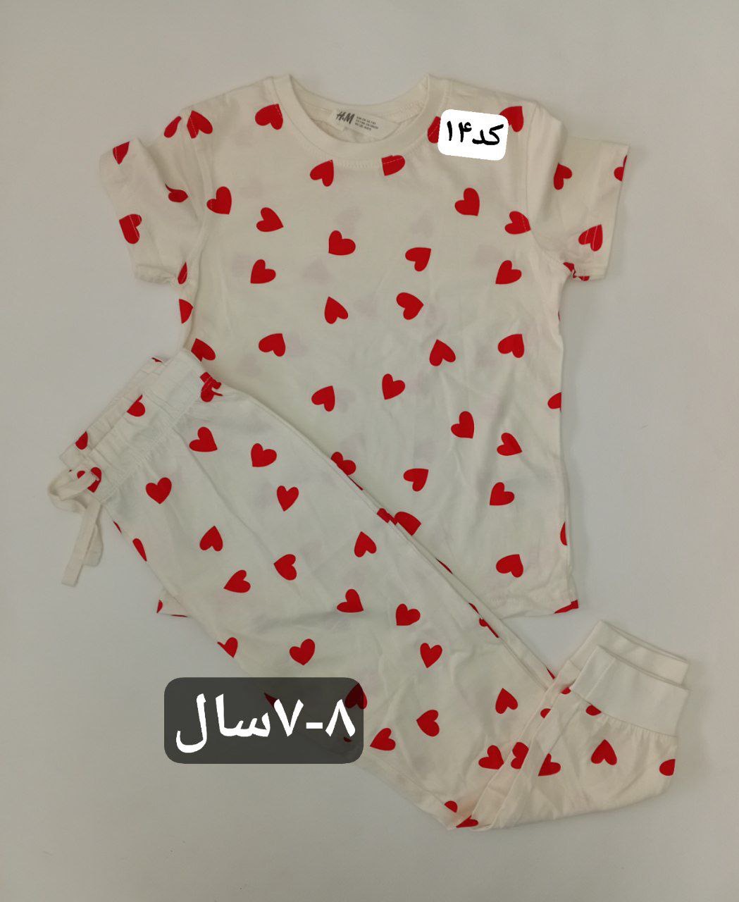 7 - 8 سال h&m : تیشرت : قد 47 - پهنا 35 -- شلوار: قد 70 - کمر 28