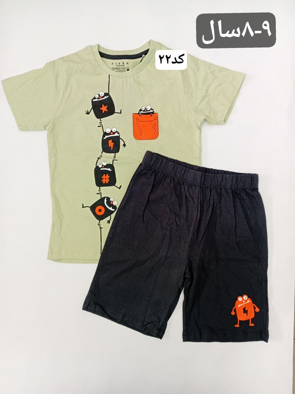 6 - 7 سال پسرانه fiaba : تیشرت: قد 47 - پهنا 34 -- شلوارک: قد 36 - کمر 25