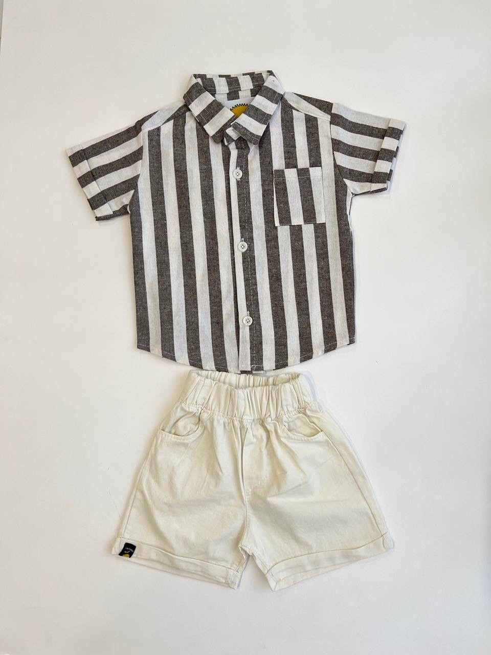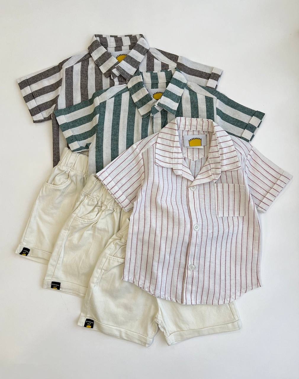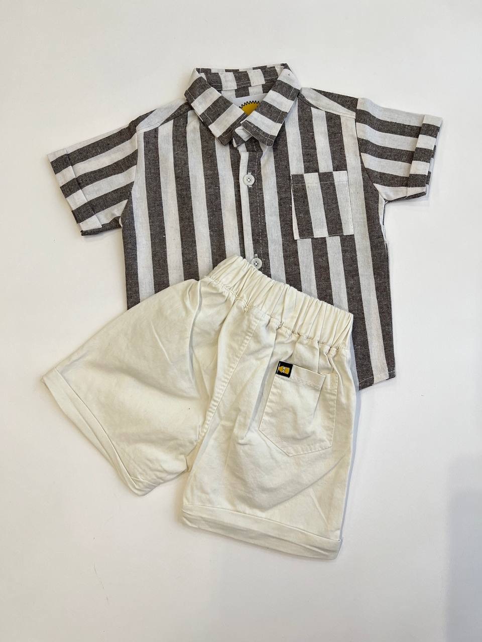 3471 - ست پیراهن شلوارک راه راه برند ایرانی سیمپسون