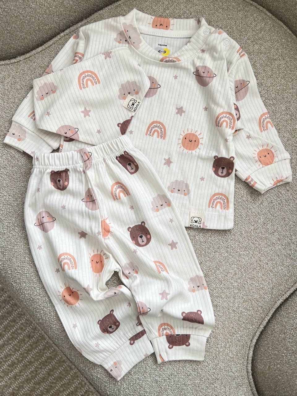9-6 ماه:               بلوز: قد 29 - پهنا 27 -- شلوار: قد 37 - کمر 14