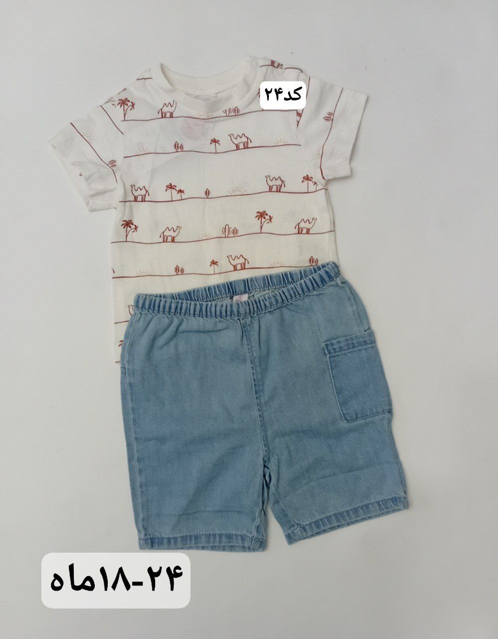 24 - 18 ماه : تیشرت: قد 36 - پهنا 30 -- شلوارک: قد 28 - کمر 22
