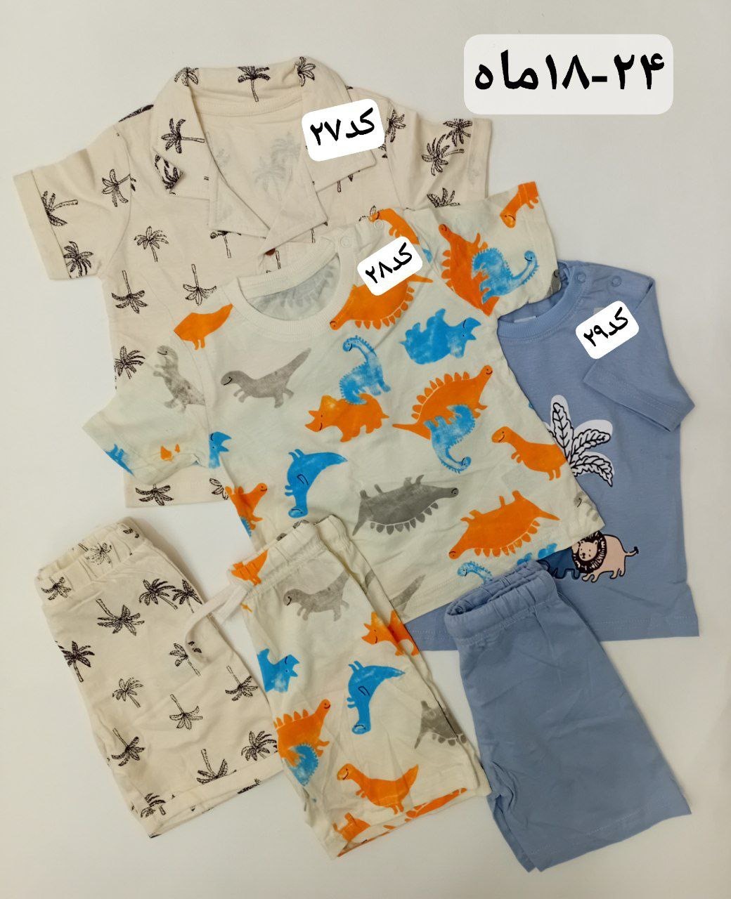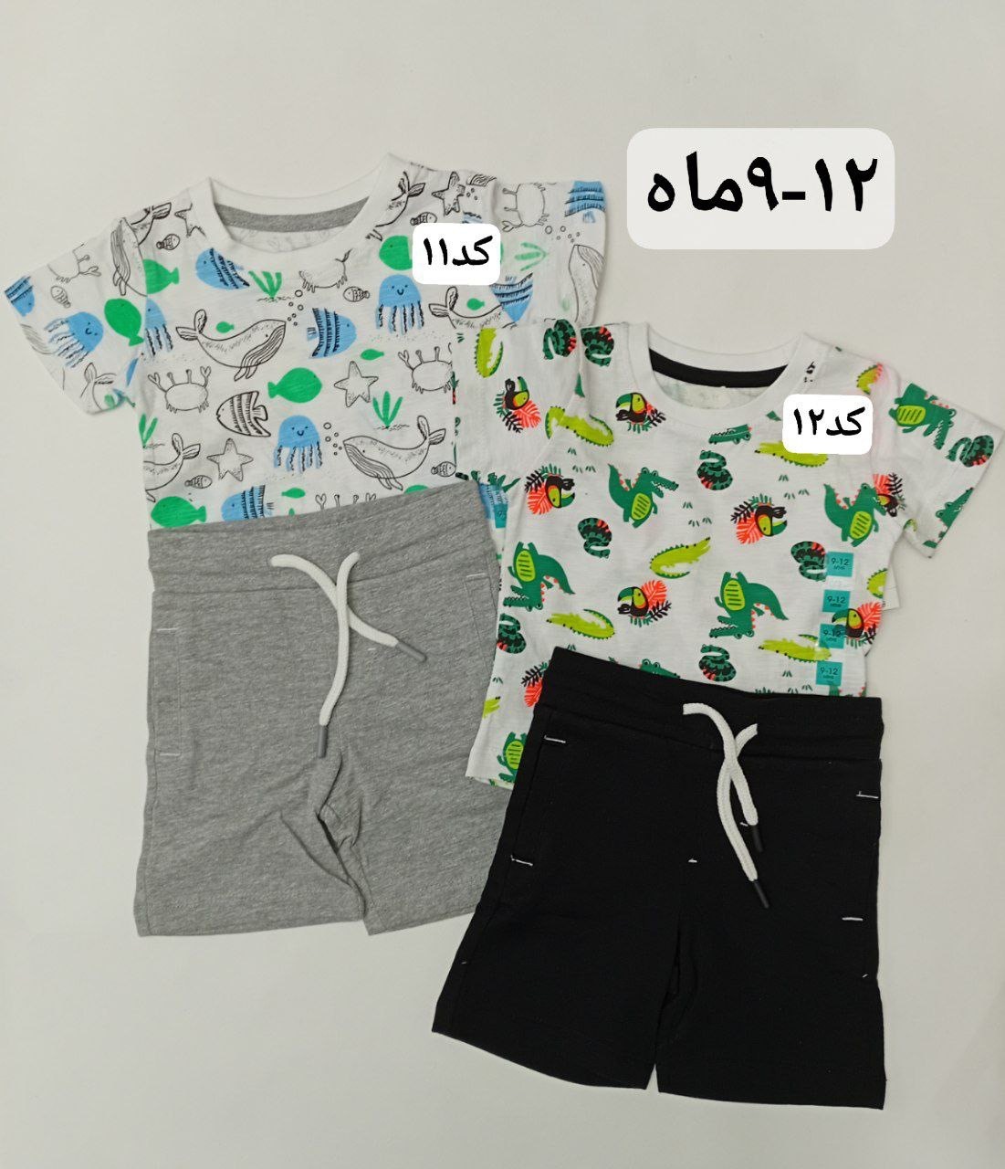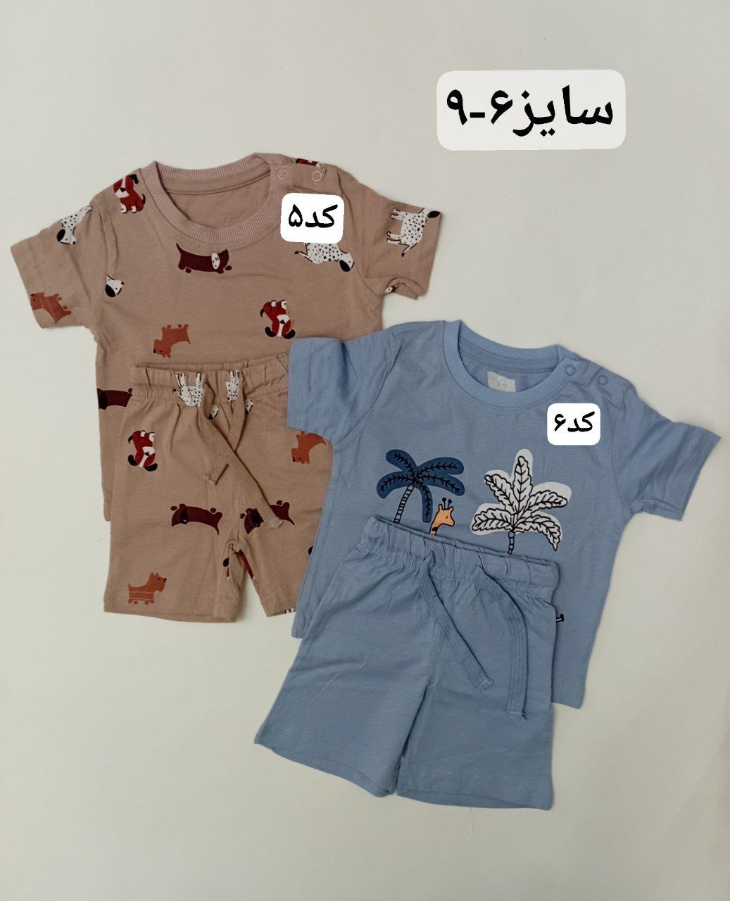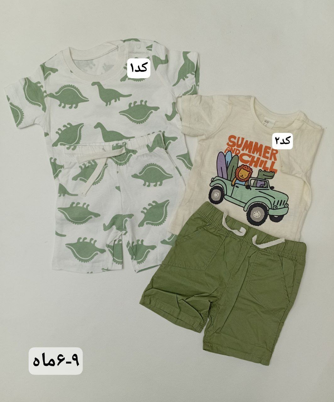 9 - 6 ماه : تیشرت: قد 32 - پهنا 28 -- شلوارک: قد 22 - کمر 26